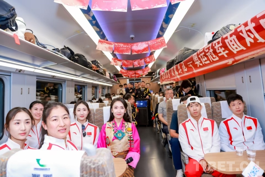圖為7月19日,奧運(yùn)冠軍一行乘坐復(fù)興號(hào)前往西藏拉薩