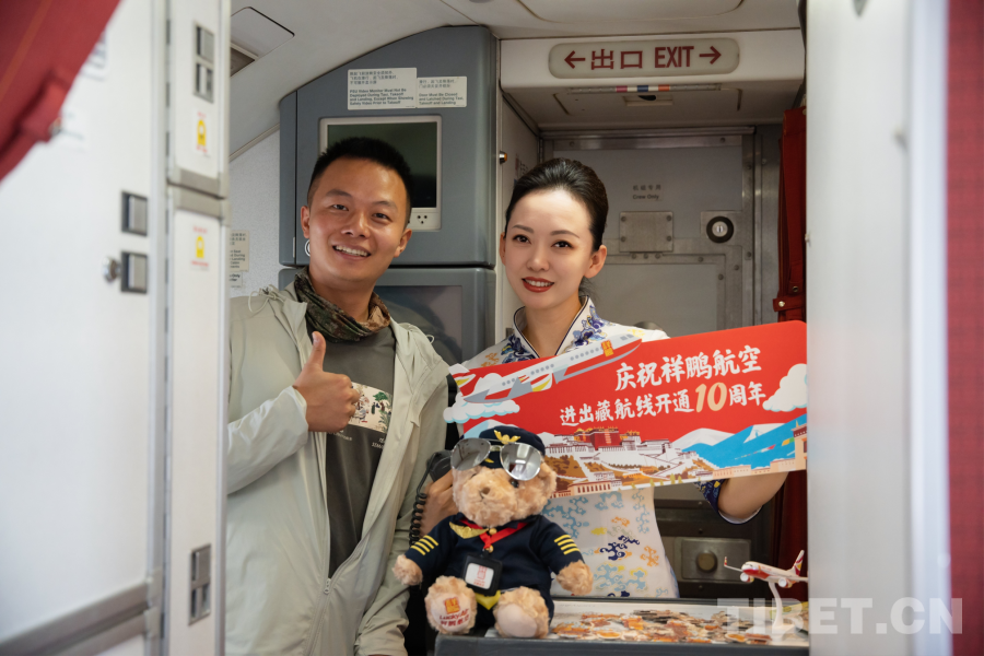 在當(dāng)天從喀什飛往阿里的航班上,祥鵬航空策劃開(kāi)展了主題活動(dòng),慶祝航線開(kāi)通10周年以及西藏自治區(qū)成立60周年。搭乘航班的每位旅客均收到了潔白的哈達(dá);有獎(jiǎng)問(wèn)答環(huán)節(jié)氣氛熱烈,客艙內(nèi)笑聲與掌聲此起彼伏;旅客分享的自己與高原的故事,更令不少人動(dòng)容。航班在祝福、歡樂(lè)與感動(dòng)中飛向雪域高原。
