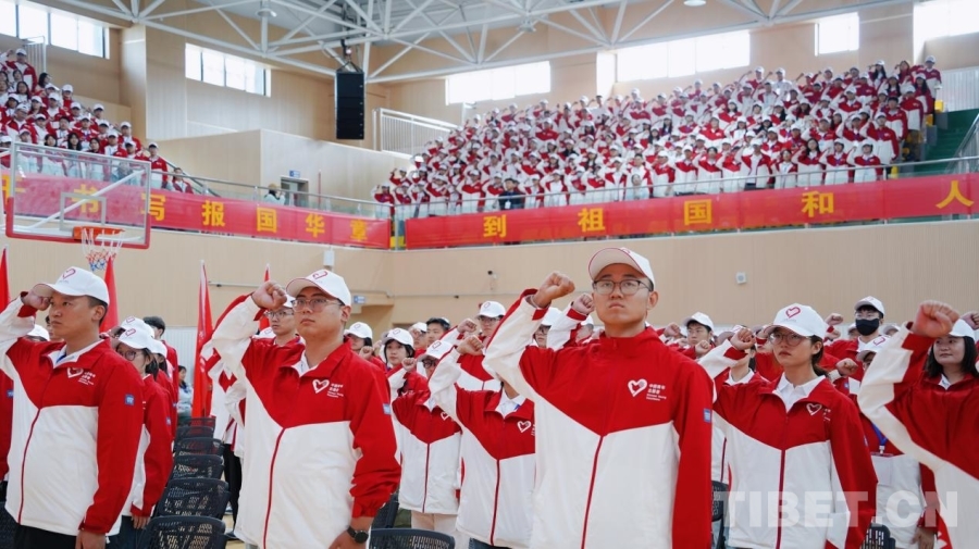 中國西藏網(wǎng)訊 7月29日,激昂的旋律回蕩在拉薩,一場莊嚴的出征儀式在此舉行。來自北京、河北、四川、湖南、上海、西藏等全國22個?。ㄗ灾螀^(qū)、直轄市)的1200余名大學生志愿服務西部計劃服務西藏專項志愿者整裝集結,滿懷壯志,即將奔赴西藏自治區(qū)7市(地)基層一線,開啟為期1至3年的志愿服務新征程。其中,研究生支教團成員達124人。