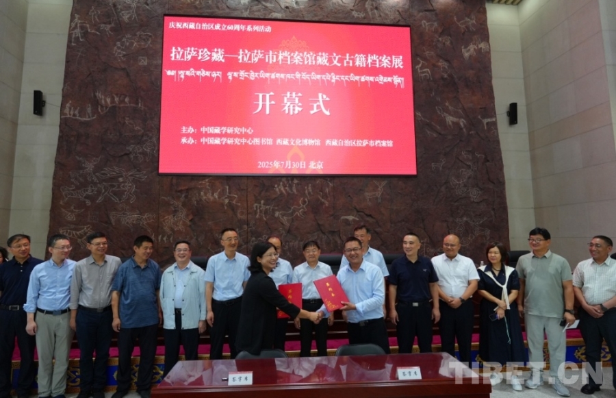 本次展覽由中國(guó)藏學(xué)研究中心主辦,中國(guó)藏學(xué)研究中心圖書館、西藏文化博物館和西藏自治區(qū)拉薩市檔案館共同承辦。開(kāi)幕式上,中國(guó)藏學(xué)研究中心圖書館與拉薩市檔案館簽署《藏文古籍檔案文獻(xiàn)數(shù)據(jù)共享與開(kāi)發(fā)利用合作協(xié)議》。(中國(guó)西藏網(wǎng) 記者/周晶)