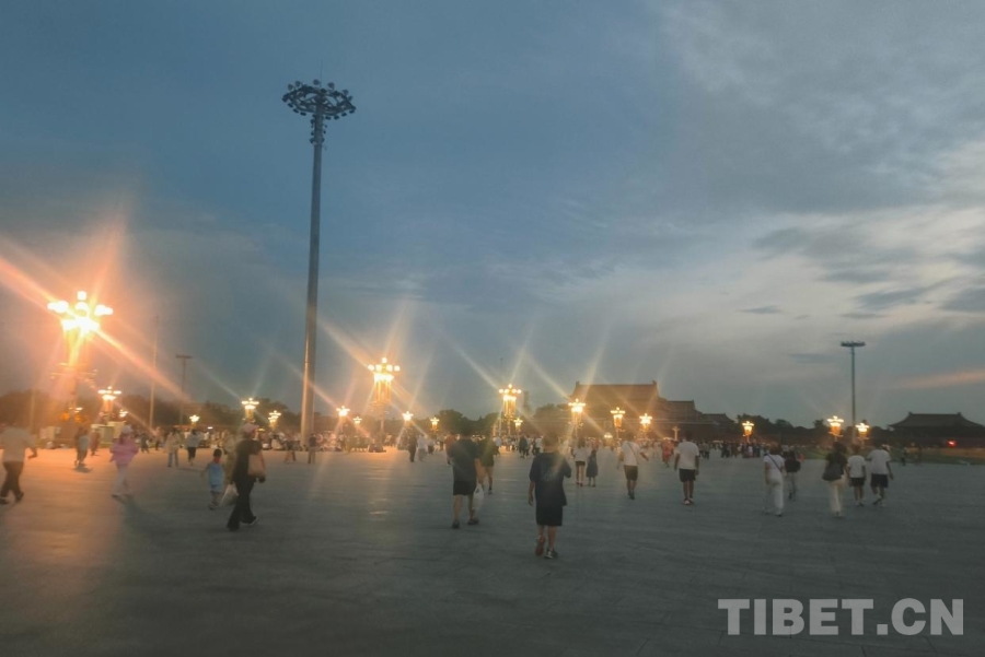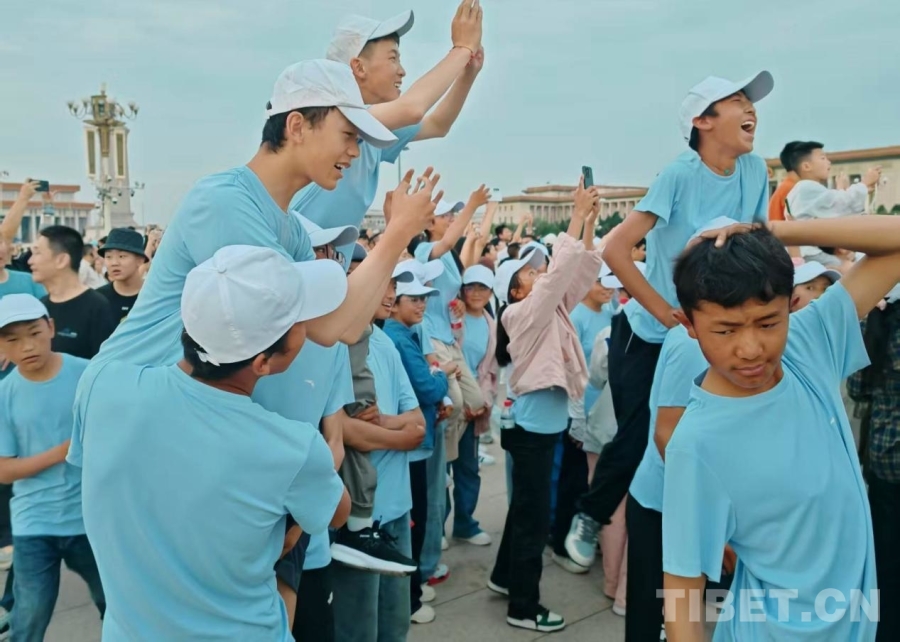 暑期的天安門廣場更加熱鬧,不僅有一家老幼同游的家庭,有旅行社帶來的各地旅游團(tuán),最多的是各種學(xué)校、團(tuán)體組織的大大小小的學(xué)生團(tuán),他們身著不同顏色款式的服裝,共同等待著激動(dòng)人心的時(shí)刻?!吧胶油}·京華筑夢”研學(xué)團(tuán)的少年們便是其中一員,他們穿著淺藍(lán)色的T恤,戴著白色的棒球帽,散發(fā)著西藏少年的朝氣。