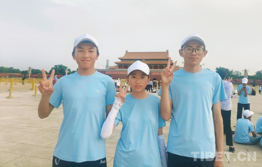 圖為參加“山河同脈·京華筑夢”研學(xué)活動(dòng)的西藏日喀則定日縣中學(xué)生達(dá)娃次仁(左)、旦增桑旦(中)和古入曲桑(右)在天安門廣場上 攝影:趙釗