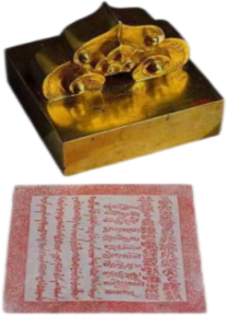 展覽中,37道敕封圣旨與13枚官印沿玻璃展柜鋪展,時間跨度從元泰定至清光緒,封號涵蓋“白蘭王”“萬戶”“都指揮僉事”“國師”“大國師”“大寶法王”“闡教王”“闡化王”“輔教王”“贊善王”“班禪額爾德尼”等。在布展中,工作人員首創(chuàng)“混搭串聯(lián)”的展覽敘事,通過在不同朝代的皇宮家具上放置對應(yīng)朝代的皇帝治藏的圣旨與印章,闡明元明清時期中央政府對西藏實施的有效行政管轄。