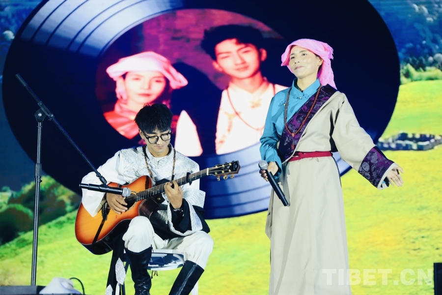圖為歌手組合丹正母子在啟幕儀式上演唱了其代表作歌曲《別哭》《大風(fēng)吹過(guò)青瓦房》,贏得臺(tái)下歡呼陣陣。攝影:龍真多吉