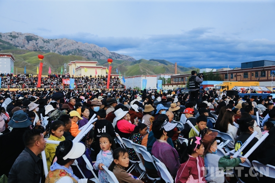 圖為啟幕儀式現(xiàn)場(chǎng)座無(wú)虛席,為囊謙縣群眾帶來(lái)一場(chǎng)跨越地域的文化盛宴與視聽(tīng)體驗(yàn)。攝影:龍真多吉