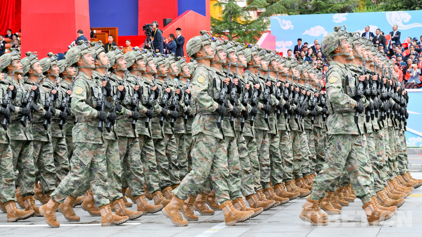 圖為西藏自治區(qū)成立60周年慶祝大會(huì)解放軍方隊(duì) 攝影:趙振宇
