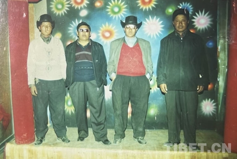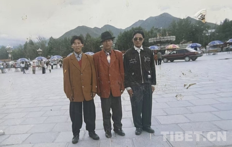 這是我在年輕時候在拉薩同幾個朋友一起拍的合影,這副打扮在那個時候非常流行。