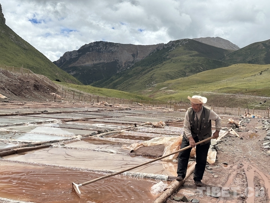 圖為江羊巴桑在鹽場(chǎng)中 攝影:畢然