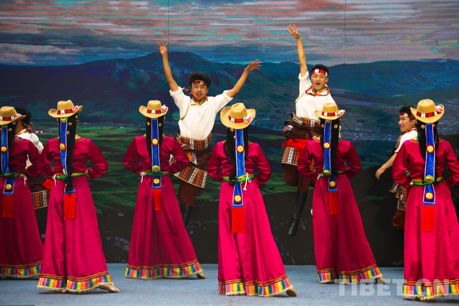 圖為活動(dòng)現(xiàn)場歌舞表演 攝影:龍真多吉