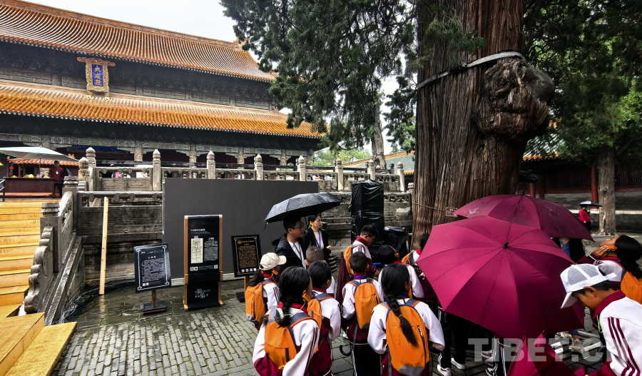 圖為在孔廟,孩子們撫摸距今兩千多年的參天古柏 攝影:劉莉