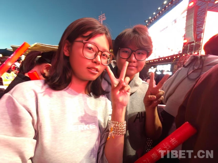 在她身旁的是兩位來自西藏大學的學生——米瑪倉覺和她的朋友旦增措姆。她們在接受采訪時表示,如今拉薩這類文化活動越來越多,只要有空她們就會參加?!斑@樣的場合不僅能見到喜歡的歌手,也讓我們在校園生活之外學到新東西,我們非常喜歡?!泵赚攤}覺說道。