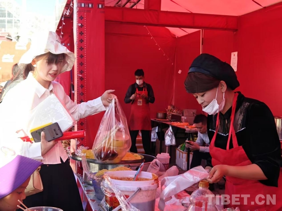 圖為觀眾在活動現(xiàn)場的小吃攤位購買小吃
