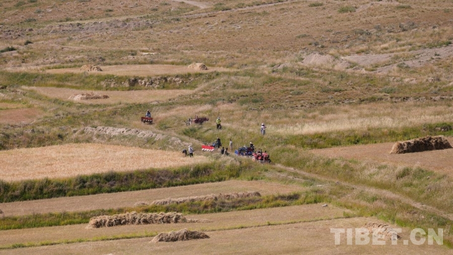 圖為聯(lián)合收割機工作現(xiàn)場 攝影:德吉卓瑪
