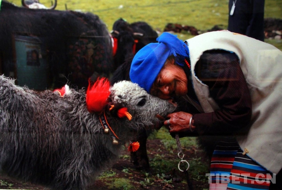 圖為“雪域古城·圣地拉薩”第七屆書畫攝影藝術(shù)展攝影作品《奶奶與牛犢》 攝影:溫都蘇 翻拍:趙釗