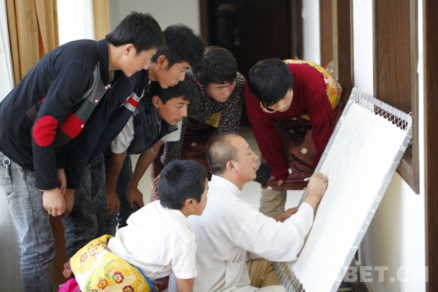 在我們的印象中,如果是一個唐卡大師,主要工作或許就是培養(yǎng)更多唐卡傳承人。然而,娘本卻并非如此。他的工作除了培養(yǎng)更多唐卡傳承人之外,還為其他事業(yè)做出了很多貢獻(xiàn)。他說,自己每年都會為同仁的100多戶脫貧戶發(fā)放面粉、大米、油以及現(xiàn)金等物資。在救助的過程中,他發(fā)現(xiàn)教育是一個地方、一個家庭發(fā)展的重要因素。他說,有一次他在村子里走的時候,碰見了村子里一個比他歲數(shù)大的人。通過交談,他得知對方家的孩子今年考上了大學(xué),但家長歲數(shù)大,收入有限,兩個孩子無法同時上學(xué)。娘本聽了以后,毫不猶豫地說:“只要你讓孩子享受教育,我來資助學(xué)生?!彼€感慨地說:“我們那個年代沒有機會享受現(xiàn)在的優(yōu)質(zhì)教育,現(xiàn)在國家政策好,讓孩子享受我們國家優(yōu)質(zhì)教育成為人才是最重要的?!蹦悄觊_始,他就走上了資助學(xué)生的道路。因為在他看來,一個學(xué)生培養(yǎng)出來,能影響一個家庭或者一個村莊甚至一代人。