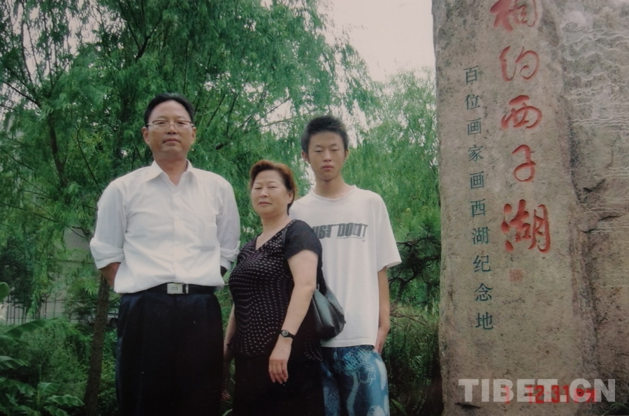 圖為王藏江與愛人、孩子在杭州西湖合影