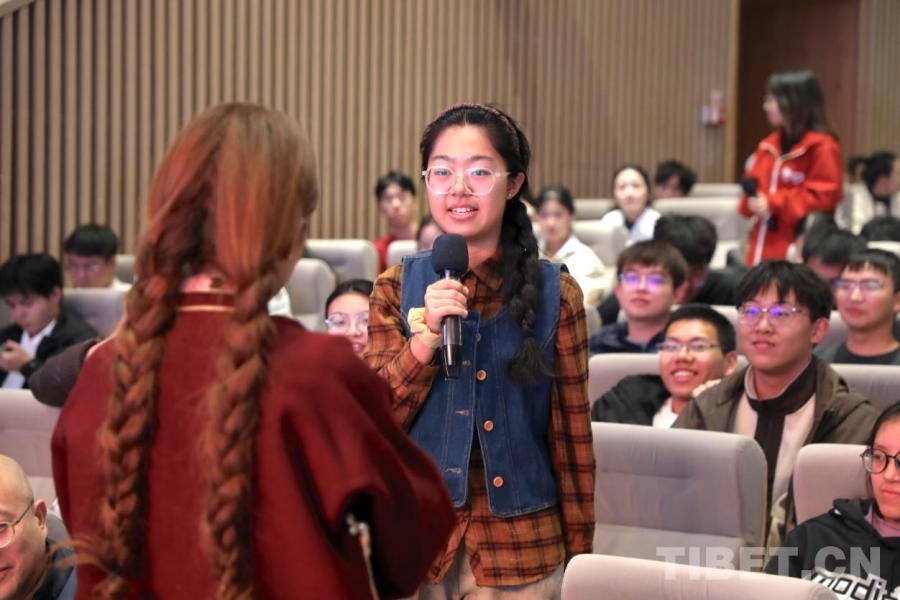 中國西藏網(wǎng)訊 “方程式是造物主獻(xiàn)給人類的詩篇,……每一個都給心里莊嚴(yán)感、靈魂感、畏懼感,你在西藏都能感受到這種(感覺)?!痹诒本┼]電大學(xué)科學(xué)會堂的舞臺上,中央廣播電視總臺主持人朱迅引用楊振寧先生的話,闡述了什么是她心中的西藏。10月30日,“一眼西藏,一生不忘”全國大學(xué)生西藏行暨西藏文化進(jìn)校園活動走進(jìn)了北京郵電大學(xué)?;顒友堉煅缸鳛榉窒砑钨e,將她與西藏的故事說與大家聽。