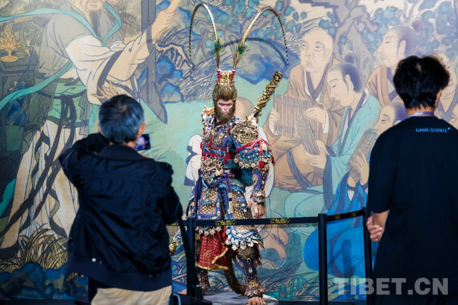 圖為《黑神話·悟空》在此次互聯(lián)網(wǎng)大會(huì)上展出的等身悟空模型,吸引了許多游戲愛(ài)好者駐足欣賞打卡。