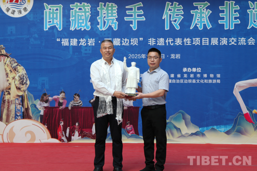 活動(dòng)儀式上,閩藏兩地代表互贈(zèng)特色紀(jì)念品。雙方一致表示,閩藏兩地因?qū)谠毓ぷ骶o密相連,非遺交流更是成為深化彼此合作的堅(jiān)實(shí)橋梁。龍巖市與邊壩縣文旅行業(yè)將以此次活動(dòng)為重要契機(jī),攜手守護(hù)文化根脈,持續(xù)推動(dòng)非遺文化的創(chuàng)造性轉(zhuǎn)化與創(chuàng)新性發(fā)展,讓“人民的非遺”真正實(shí)現(xiàn)“由人民共享”,讓雪域高原的獨(dú)特文化魅力被更多人知曉與喜愛。