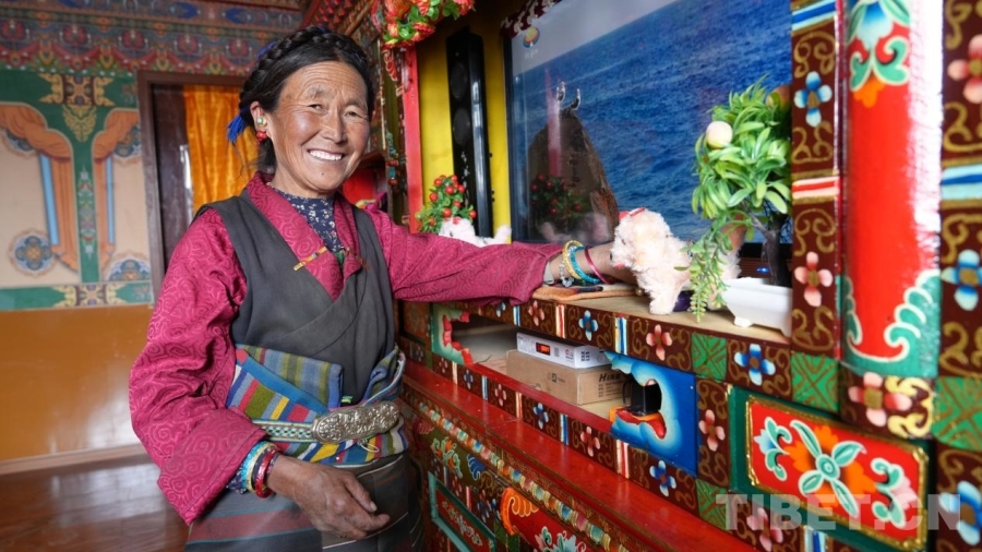 圖為薩迦縣雄麥鄉(xiāng)曲堆村村民、藏戲隊(duì)員白瑪古入