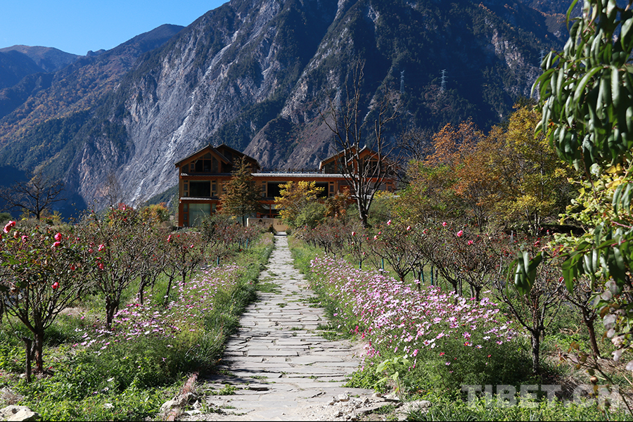 全村保留了村莊原貌,對(duì)32戶藏式古寨進(jìn)行風(fēng)貌改造,新建了停車(chē)場(chǎng)、人工湖、民宿等設(shè)施。在這里看不見(jiàn)一根電線桿,因?yàn)槿濉拔寰€下地”。房屋和道路邊都種樹(shù)栽花,村容村貌更顯世外桃源般的優(yōu)雅閑適。