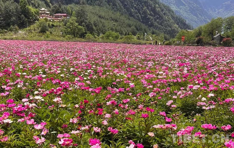 圖為最早種植芍藥時(shí),色龍村的花海 來(lái)源:當(dāng)?shù)毓﹫D