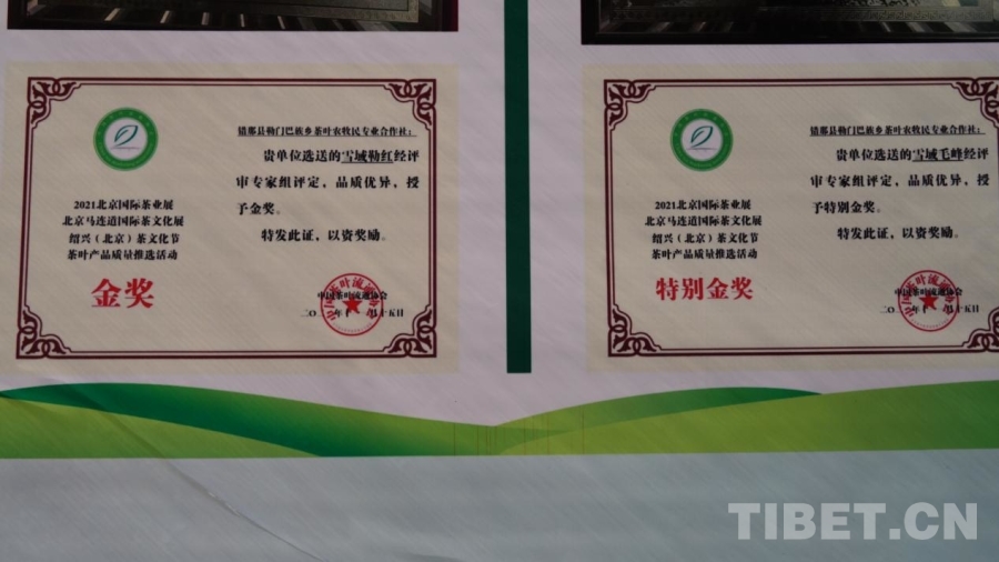 “勒倉(cāng)蓮”,是勒門巴民族鄉(xiāng)茶葉農(nóng)牧民專業(yè)合作社打造的茶葉品牌。其中,“雪域毛峰”“雪域勒紅”在2021年北京國(guó)際茶葉展、北京馬連道國(guó)際茶葉文化展、紹興(北京)文化節(jié)茶葉產(chǎn)品質(zhì)量推選活動(dòng)中分別榮獲特別金獎(jiǎng)和金獎(jiǎng),讓高原茶香飄向了更遠(yuǎn)的地方。
