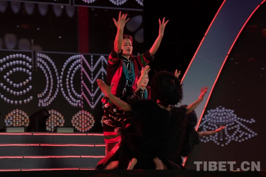 在開幕式文藝晚會上,墨脫縣藝術(shù)團作為晚會的“文化使者”,通過五支特色舞蹈,將墨脫的民族文化與精神風貌展現(xiàn)得淋漓盡致:開場舞《相約墨脫》中,舞者身著門巴族、珞巴族服飾,激昂的舞步與悠揚旋律交織,瞬間將觀眾帶入“蓮花秘境”的冬日幻境;《靈動門珞》以肢體語言為筆,生動重現(xiàn)門巴族織錦時的細膩指尖、珞巴族狩獵時的矯健身姿,剛?cè)岵膭幼鞴蠢粘鰞蓚€民族千年生活圖景,贏得現(xiàn)場掌聲雷動。
