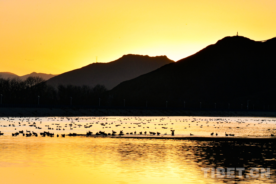 圖為拉薩市林周縣卡孜水庫(kù)內(nèi)大批越冬候鳥(niǎo)在此覓食休憩(攝于11月23日)攝影:趙振宇