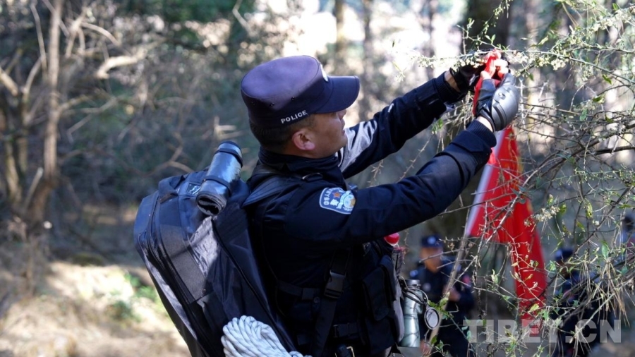 這一路,所謂好走的路,也只夠一人挺直身子通過。更多時(shí)候,我們必須手腳并用——腳下是打滑的碎石。手緊抓著巖縫里的草石,一步,一步,往前挪。巡邊途中的原始叢林間,無數(shù)或新或舊的紅繩系于冷杉枝頭,蜿蜒指向中尼邊境46號(hào)界樁的方向——這是民警們用腳步反復(fù)確認(rèn)的“生命航線”。