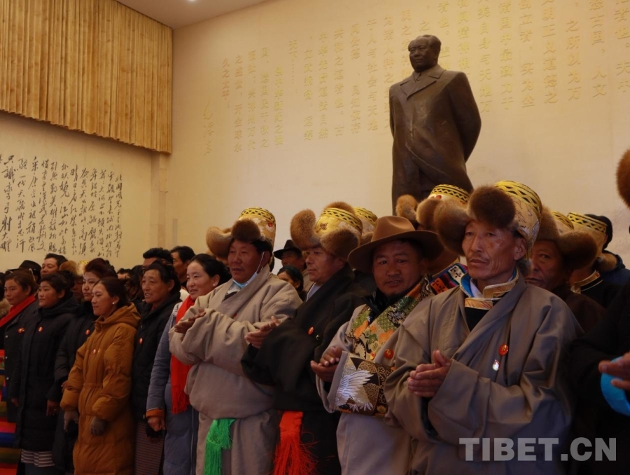 圖為西藏各族各界群眾紀念毛澤東同志誕辰132周年