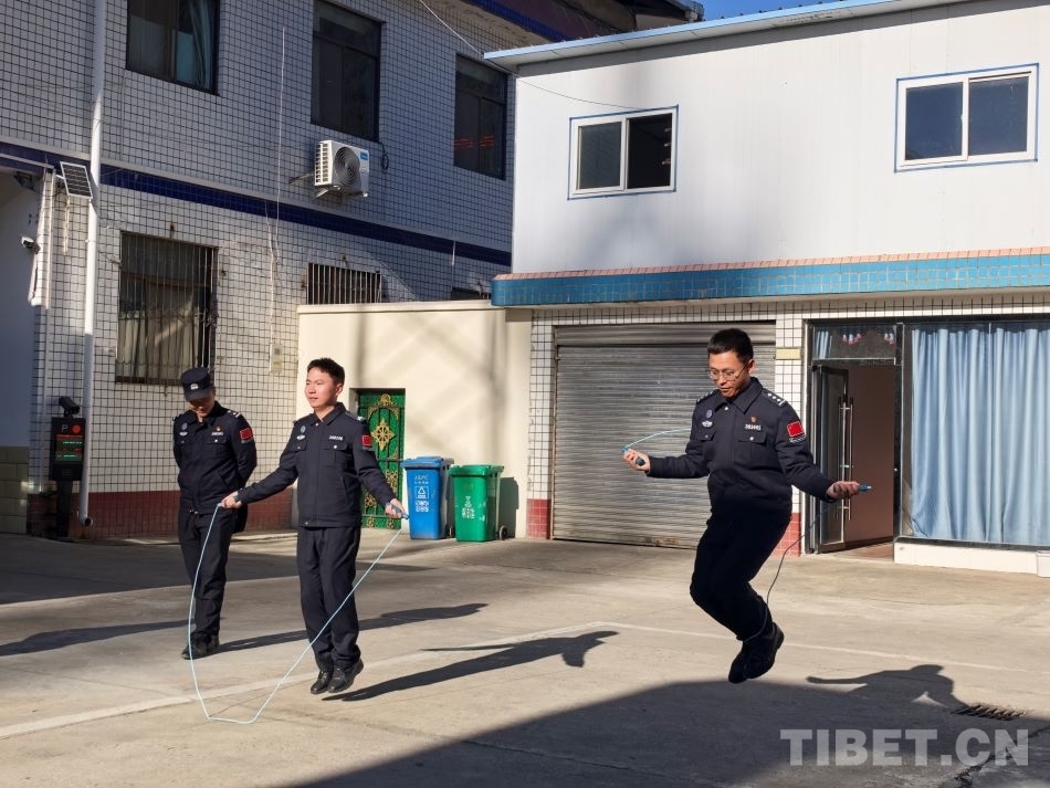 圖為米林邊境派出所民警正在參與跳繩比賽
