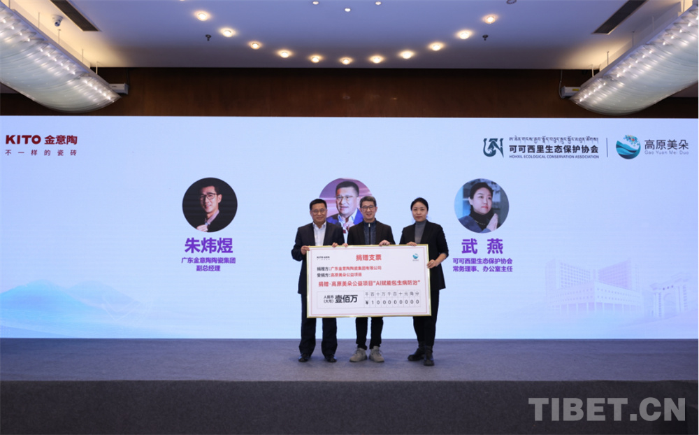 圖為愛心企業(yè)向高原美朵基金會捐贈百萬款項