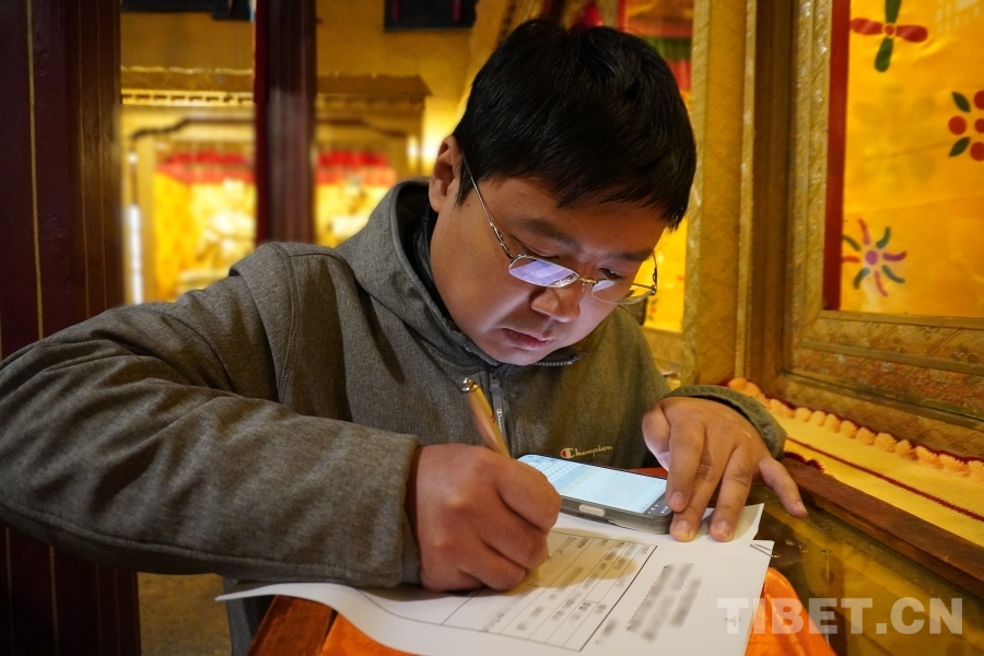 圖為敏珠林寺僧人對(duì)照詳單核查文物 攝影:張宇