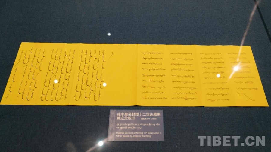 圖為西藏博物館藏咸豐皇帝封授十二世達(dá)賴?yán)镏鸽窌ㄇ逑特S9年 公元1859年) 攝影:趙振宇