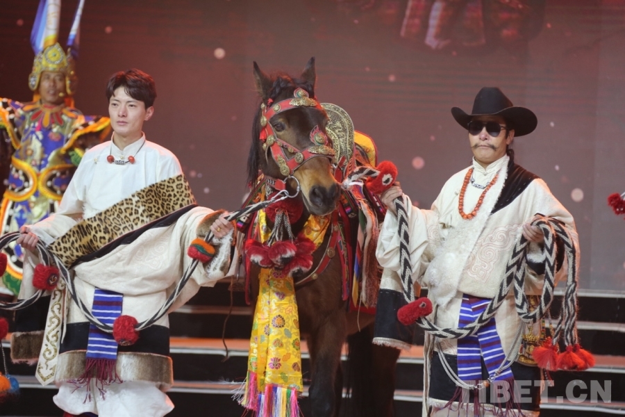 晚會由大型融合性歌舞《歡騰火馬》拉開帷幕,將藏北傳統(tǒng)“火馬”文化符號與現代舞臺藝術創(chuàng)新結合。演員身著民族盛裝,融入駿馬、草原、哲噶等元素,以恢弘音樂與奔放舞姿,營造出熱烈祥和的節(jié)日氛圍,生動展現那曲人民喜迎新年、團結向上的精神風貌。