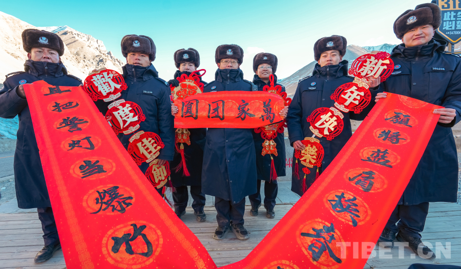 新春佳節(jié)來臨之際,雪峰巍巍。在海拔五千多米的珠峰大本營,西藏邊檢總站日喀則邊境管理支隊(duì)珠峰邊境派出所的民警,與來自天南地北的游客圍聚在一起。寒風(fēng)中飄起溫暖的哈達(dá),一聲聲“扎西德勒”伴著“新年好”,在離天空最近的地方交匯成真摯的祝愿。(中國西藏網(wǎng) 通訊員/葉軼)