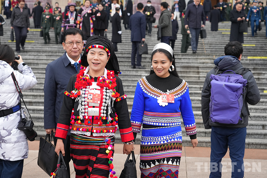 來(lái)自西藏自治區(qū)的全國(guó)人大代表走出會(huì)場(chǎng) 攝影:邊子捷