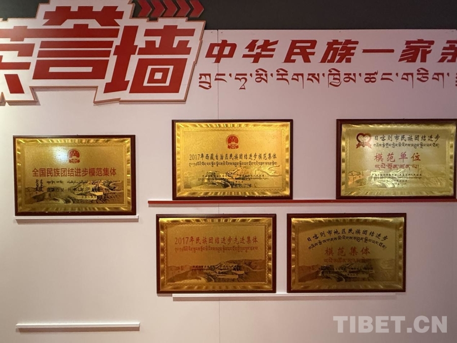 民族團(tuán)結(jié)進(jìn)步教育基地展館榮譽(yù)墻展示切娃鄉(xiāng)和普納村民族團(tuán)結(jié)進(jìn)步獎(jiǎng)項(xiàng)