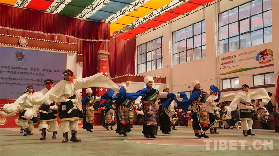 色尼區(qū)團(tuán)結(jié)街道舉辦紀(jì)念西藏民主改革67周年主題文藝演出 來源:色尼融媒