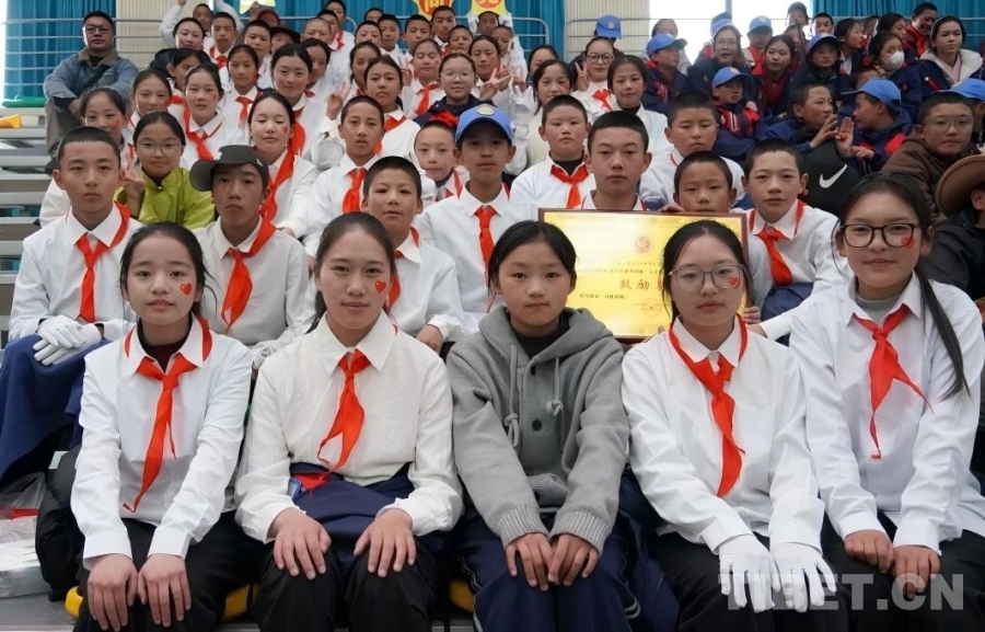 色尼區(qū)第二(杭嘉)中學(xué)舉辦紀(jì)念西藏民主改革67周年文藝活動(dòng),活動(dòng)結(jié)束后獲獎(jiǎng)班級(jí)合影 來源:色尼融媒