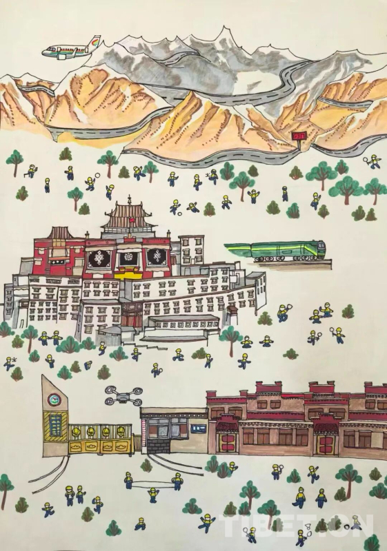 西藏那曲市索縣第二小學(xué)學(xué)生珍查尼瑪?shù)睦L畫作品《星火的雪域足跡》 圖片來源:索縣融媒體中心