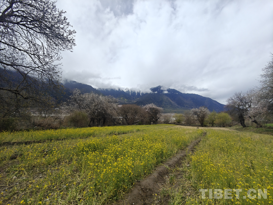 現(xiàn)在,索朗拉宗的民宿有七間房,四間是去年新裝的,帶獨立衛(wèi)生間,旺季基本天天滿房。院子里有桃花,有戶外帳篷;屋后是油菜花和桃花,遠處是雪山,美得夢幻。