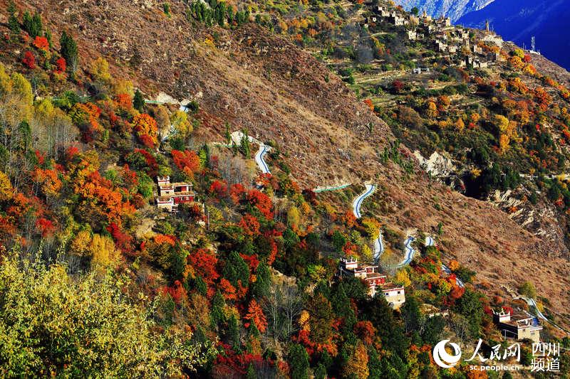 丹巴縣蜿蜒曲折的通村路。李永安 攝