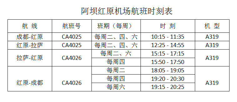 航班時刻表來了!四川紅原機場3月12日起復(fù)航