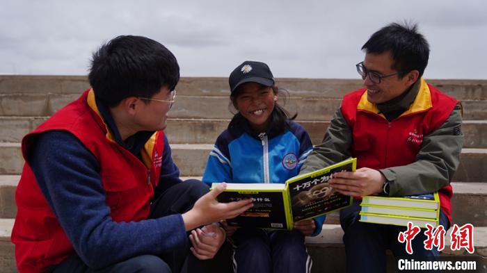 圖為黨員服務(wù)隊(duì)隊(duì)員與孩子一起閱讀書籍。昂尕 攝