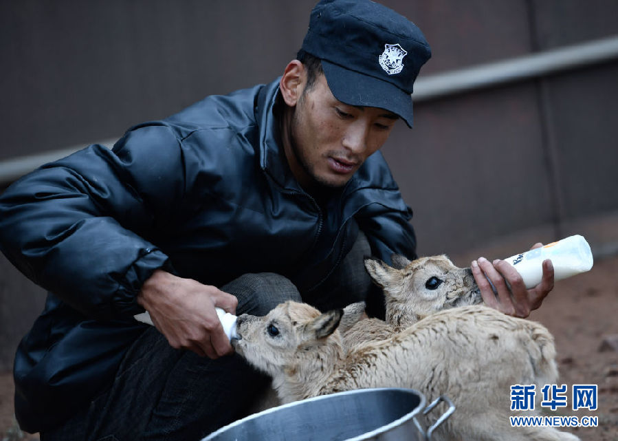 為讓11只藏羚羊幼仔盡快適應環(huán)境、健康成長,卓乃湖保護站安排專人,在特定區(qū)域對其進行喂養(yǎng)。記者在卓乃湖保護站看到,每日早、中、晚,巡山隊員才文多杰會按時給小藏羚羊喂奶,每只小藏羚羊都有自己的“專用”奶瓶。