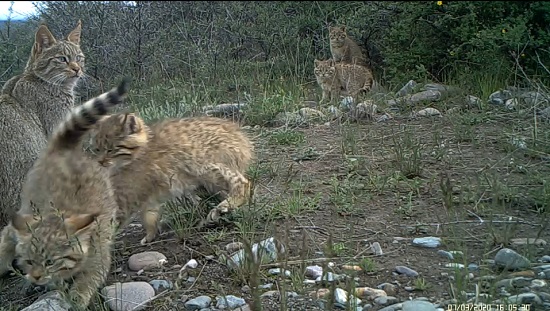 據(jù)了解,近日祁連山國家公園青海省管理局聯(lián)合北京大學(xué)開展荒漠貓專項調(diào)查時,從野外回收的紅外相機(jī)數(shù)據(jù)中發(fā)現(xiàn)了一組荒漠貓撫育幼崽的珍貴視頻畫面。視頻中一只雌性荒漠貓安靜的守護(hù)在旁邊,看著4個孩子相互打鬧、嬉戲玩耍,4只幼崽萌態(tài)十足,對大自然充滿好奇。