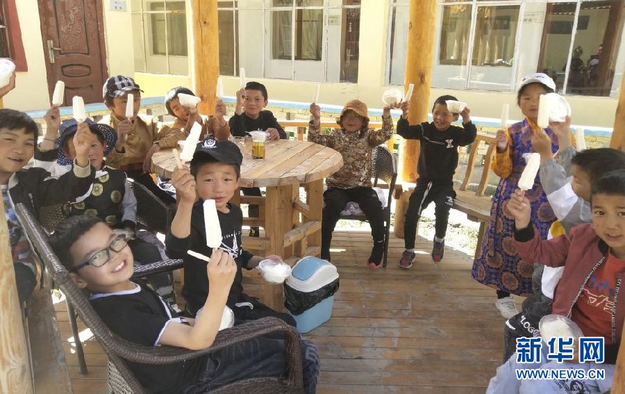 圖為雪山鄉(xiāng)小學生免費品嘗雪糕。(圖片由受訪者提供)