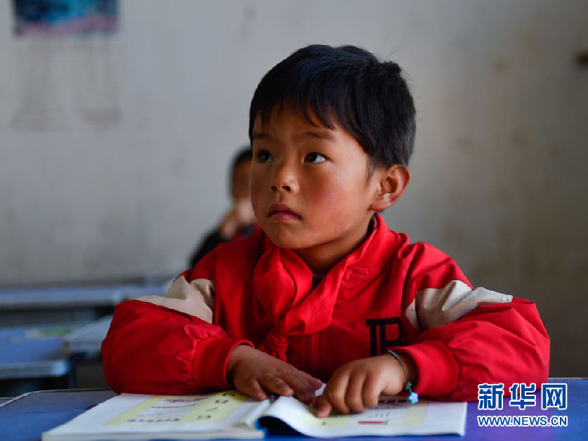 8月31日,在來塘村學(xué)校,一年級(jí)學(xué)生馬良在學(xué)習(xí)。新華社記者 張龍 攝